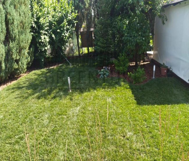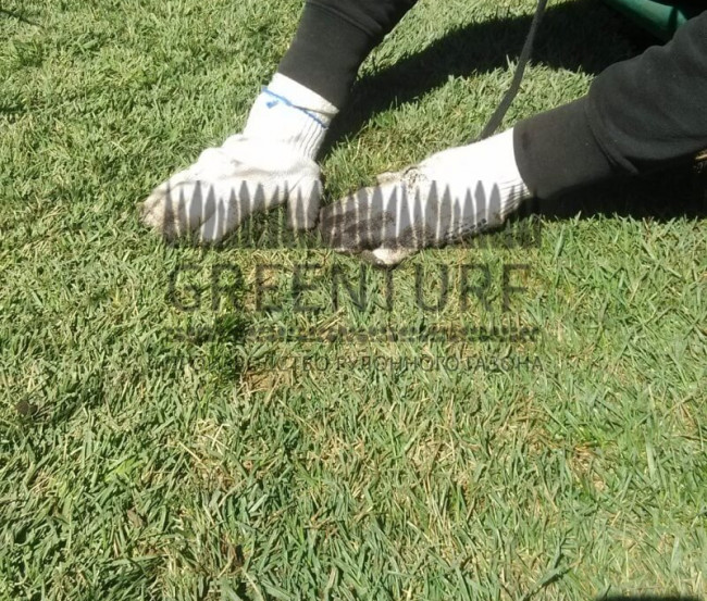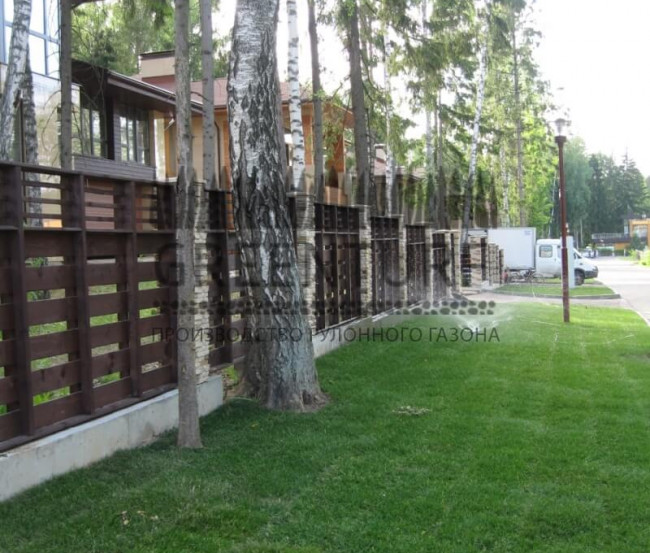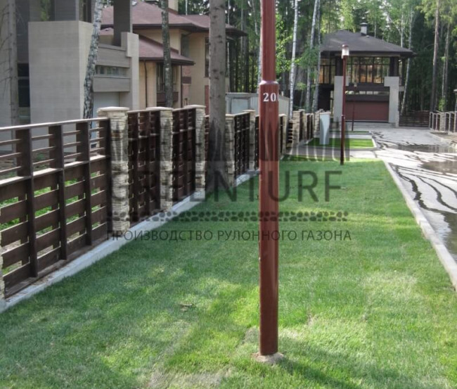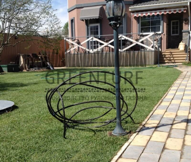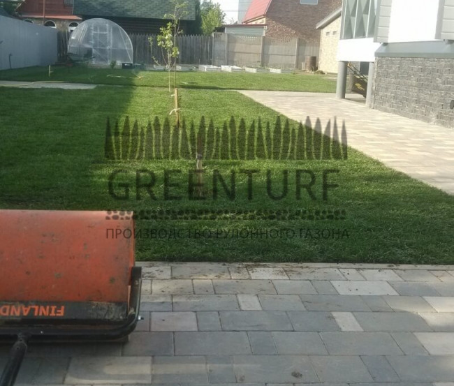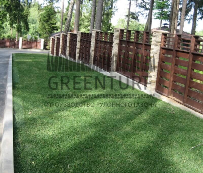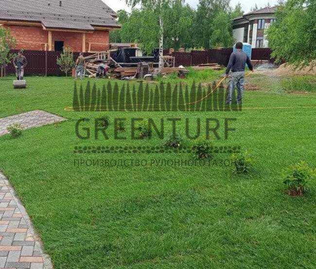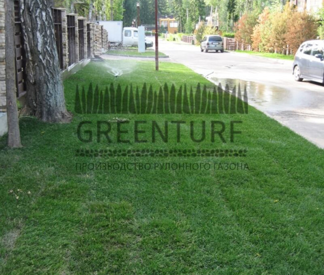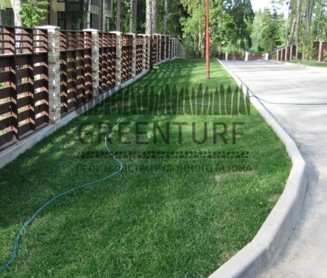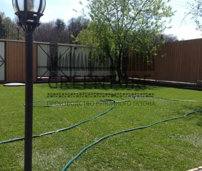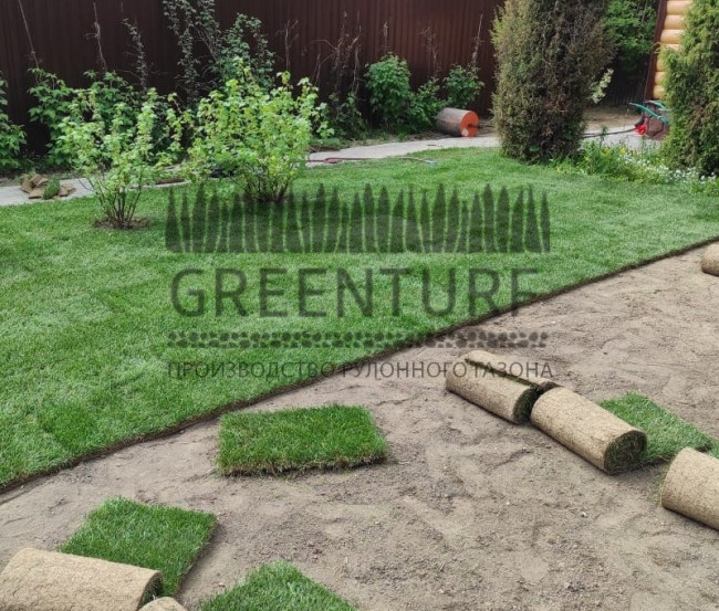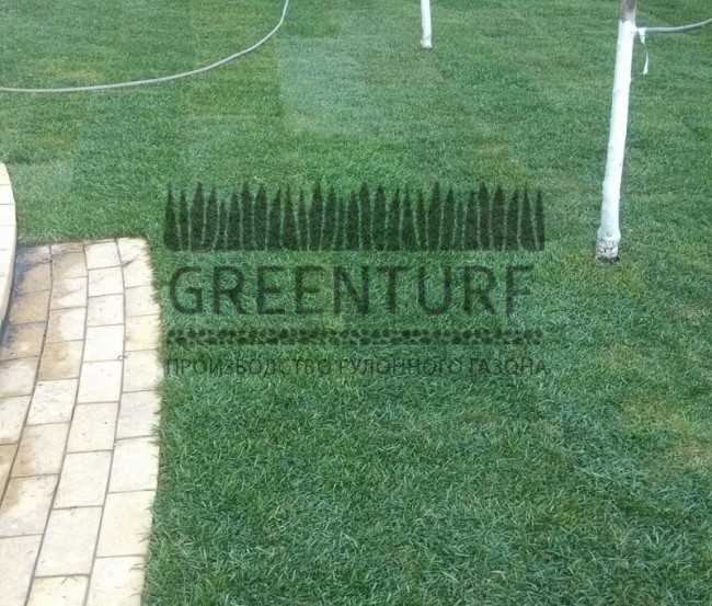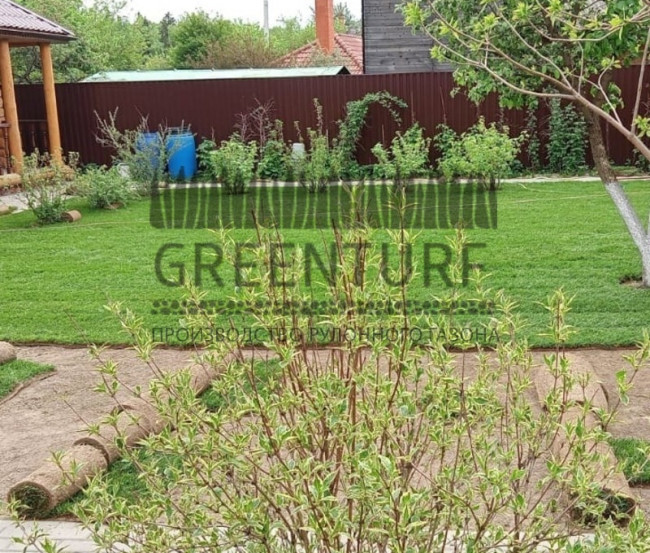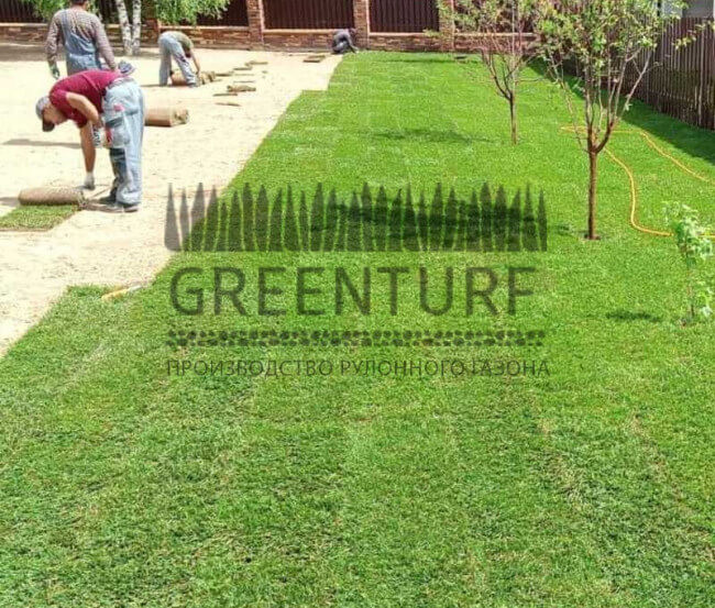 Смотрится такое покрытия не столь роскошно в сравнении с элитными аналогами, но это не значит, что его качество ниже. За таким покрытием проще ухаживать, трава красивая и густая. Чтобы воспользоваться всеми преимуществами покрытия, необходимо грамотно подготовить грунт перед укладкой. Почву нужно хорошо порыхлить, удобрить, очистить от сора. Ухаживать за газонной травой просто. Она стойко переносит зиму под снегом. После настила приживается в течение 2 недель.